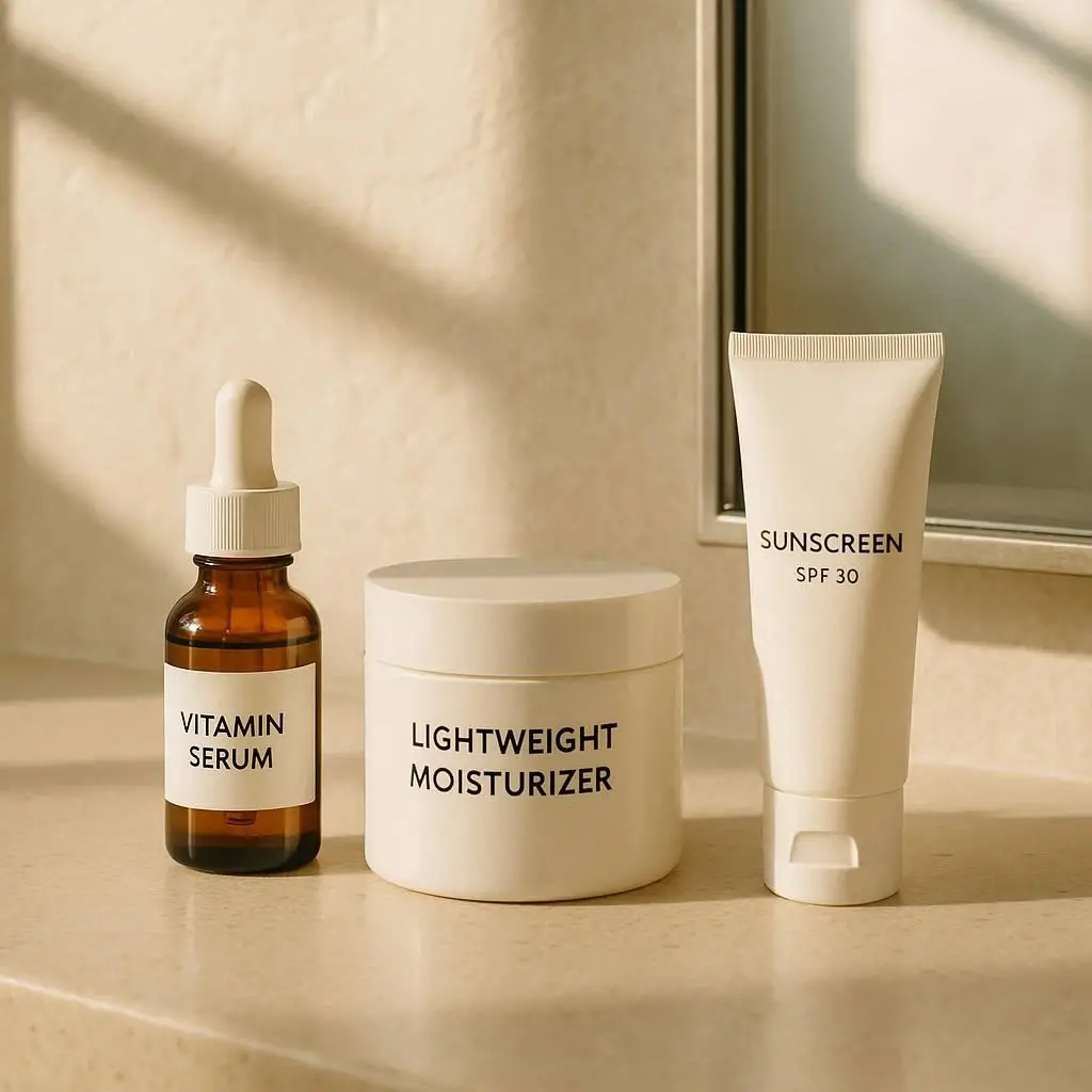 A glowing complexion in the morning comes from clean, hydrated, and protected skin. By focusing on the essentials — cleanser, vitamin C, moisturizer, and sunscreen — you give your skin the best start to face the day.